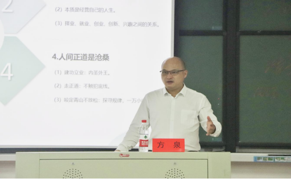 在厚德楼开展校友返校系列活动之“传递优秀经验 引领坦荡前路——优秀校友经验分享”。方泉校友作了题为《方正为人,勤慎治学,在中国式现代化征程中创造美好》的讲座。他从“生命情感”这一主题切入,结合党的二十大所传达的内容和精神进行讲解,通过联系人的八种感官,也结合嘉兴学院的发展历程,深入浅出地阐释了他的理念。讲座后,方泉校友认真地回答了在座师生的每一个问题,并结合自身经历,给出了切实有效的思路和方法。