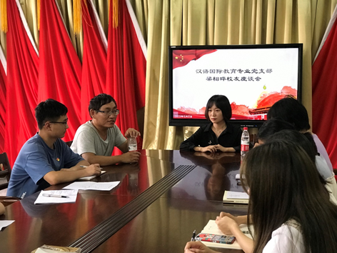 9月8日下午,18jav 汉语国际教育专业党支部于梁林校区1号楼342党员之家召开优秀校友梁栩晔返校座谈会。梁栩晔系汉语国际教育专业党支部原党员、浙江省十佳大学生、嘉兴市十大杰出青年。梁栩晔回顾了大学期间的支教经历,分享了自己对志愿服务的看法,并同汉教支部党员就大学生支教、社会公益等问题进行了交流。