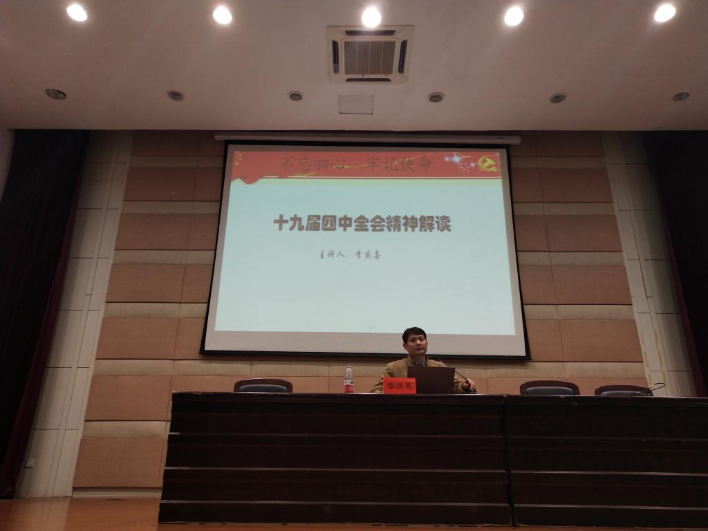 在TCL报告厅召开了十九届四中全会精神宣讲会。此次宣讲会分两场进行,讲座嘉宾为马克思主义学院李庆喜博士,18jav