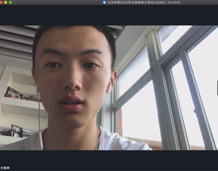 最后,5位录取为研究生的毕业生依次分享了备考过程与考研经验。被浙江师范大学录取的方志豪同学从选专业需注意的四个问题、选学校需考虑的五个问题以及自己的复习规划三部分介绍了自己的备考经验。被华中科技大学录取的陈彤同学分五个板块介绍了不同科目的复习策略与方法。被英国纽卡斯尔大学录取的叶茵同学则对留学作了相应介绍,对比分析了不同国家与地区学校的优劣势。被浙江师范大学录取的曹佩琳同学对自己报考的两个专业进行了细致讲解,并讲解了练习真题的方法。被黑龙江大学录取的叶陈祥同学介绍了考研的择校、专业、备考、调剂四方面并提出建议。
