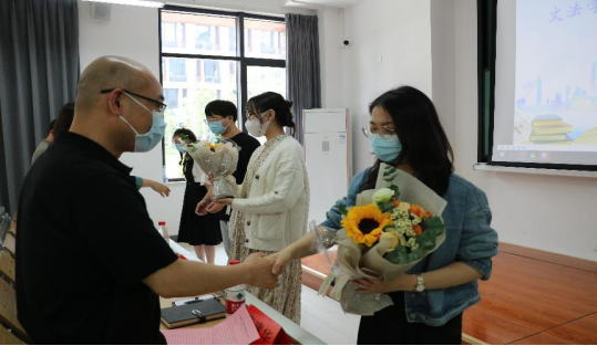 党委副书记虞岚老师宣读了今年考取研究生的32名同学名单、院校及专业,并对学校2022届毕业生考研的基本情况做了总结。各位出席会议的老师向考取研究生的同学赠与鲜花,并进行了合影留念。