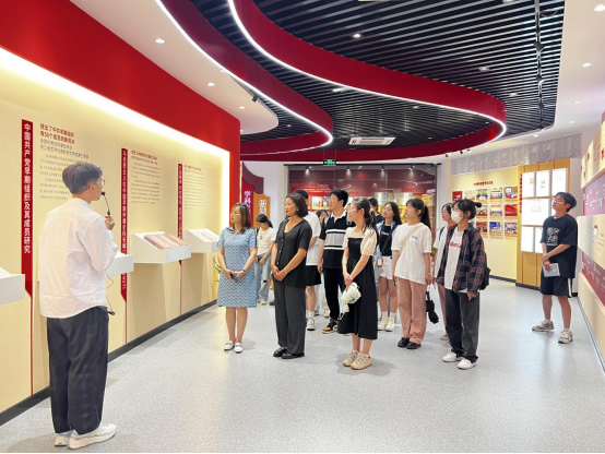 座谈会前,与会人员共同参观了红船精神育人成果展示馆,聆听了大学生义务讲解员的生动讲解。红船精神育人成果展示馆是学校红船精神育人成果、鲜明办学特色的物化展示,是学校传承红色基因、培育时代新人的重要阵地,更是学校师生坚定信仰、永葆初心的精神家园。