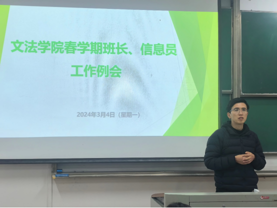 春学期班长、信息员工作例会在博学楼405教室顺利召开。本次例会由学工办辅导员计丹峰主持,辅导员闫诗佳、吴广以及18jav