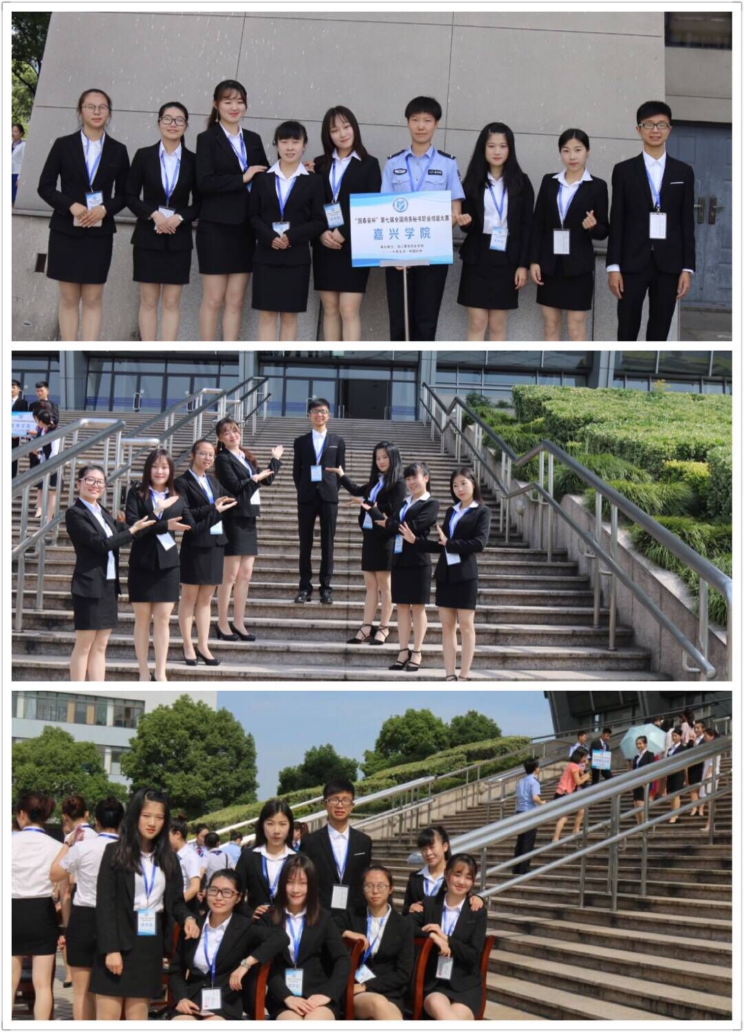 参赛队与全国各地的优秀队伍同台竞技;比赛之余,指导老师和参赛队员与各校老师、参赛队伍深入交流,获得了许多宝贵的经验。参赛的8位同学纷纷表示,参加本次大赛不仅是展现自我、提高自己的秘书职业技能和个人的综合能力的好机会,更开阔了自己的视野,认识了许许多多优秀的、志同道合的准秘书人,发现了和其他院校参赛选手之间的差距,明确了未来的努力方向。同时他们还表示将会和同学们分享本次比赛的心得,鼓励大家努力学习、积极参赛,为嘉兴学院的建设添砖加瓦。