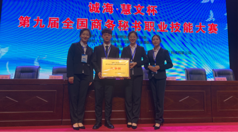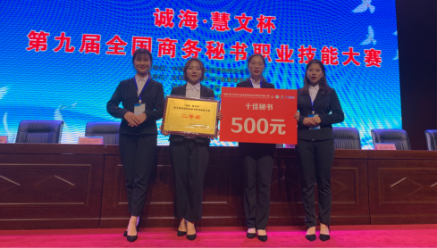 一队、二队分别获团体三等奖、二等奖;参赛队员周蔓玲获个人综合成绩一等奖、并荣获“十佳秘书”称号,方国英获个人综合成绩二等奖,盛馨莹、邹佳辛获个人综合成绩三等奖。尤其可喜的是,周蔓玲同学在三百多名本科选手中脱颖而出,成功