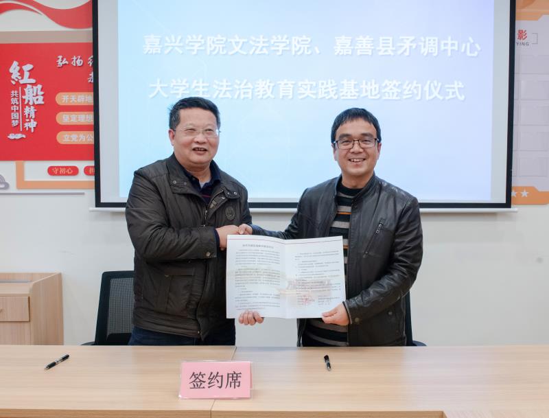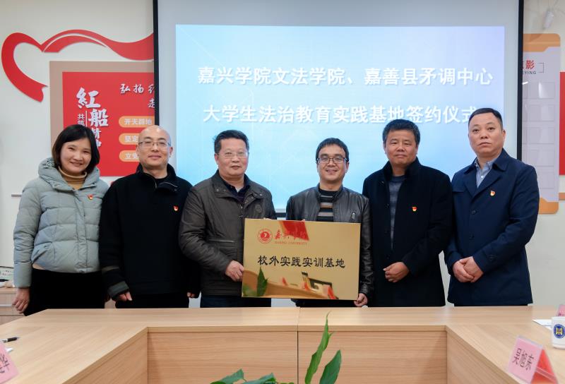 与嘉善县社会矛盾纠纷调处化解中心签署合作共建法学实践教学基地协议。嘉善县社会治理综合指挥服务中心主任周军、副主任沈海中、副主任吴旭东,18jav