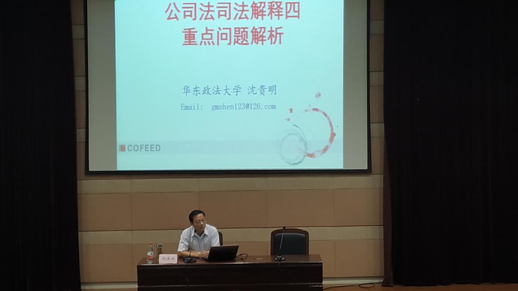 2018年8月18日下午,华东政法大学沈贵明教授应邀来18jav 作了一次题为“公司法司法解释四”的学术讲座。讲座在梁林校区TCL国际报告厅举行,18jav 法学专业部分教师参加及嘉兴市律师协会成员共计四百余人参加了此次讲座。沈教授主要解读了公司法司法解释四,并就其中的理论和实务问题进行了深入的阐述。