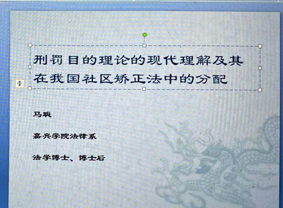 法律系马聪老师在研讨上会做了《刑罚目的理论的的现代理解及其在社区矫正法中的分配》主题演讲,马聪老师结合对“分阶段分刑种以预防为主的综合理论”的学习和理解,对当代刑罚目的理论的研究现状与问题进行了总结和反思。