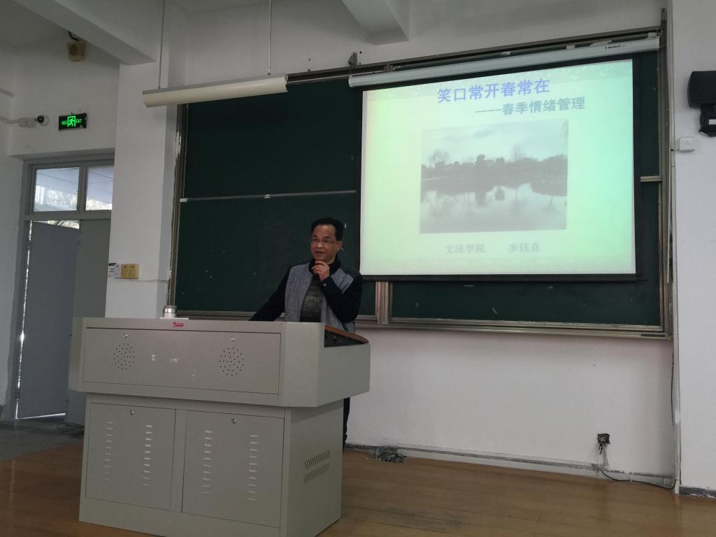 为减轻教职工的工作压力,以更饱满的精神状态投入教学、科研和社会服务工作,3月29日下午,利用周四教职工集中学习时间,18jav 工会邀请18jav 党委副书记、心理咨询师步珏良为全体教职工做了《笑口常开春常在》的专题辅导讲座。