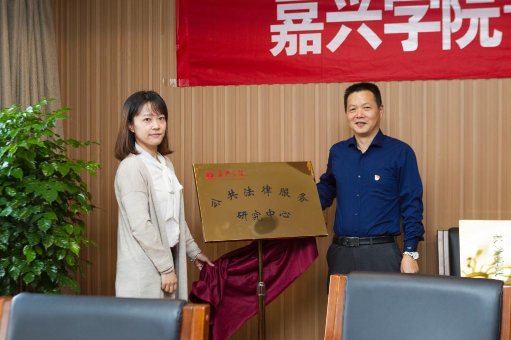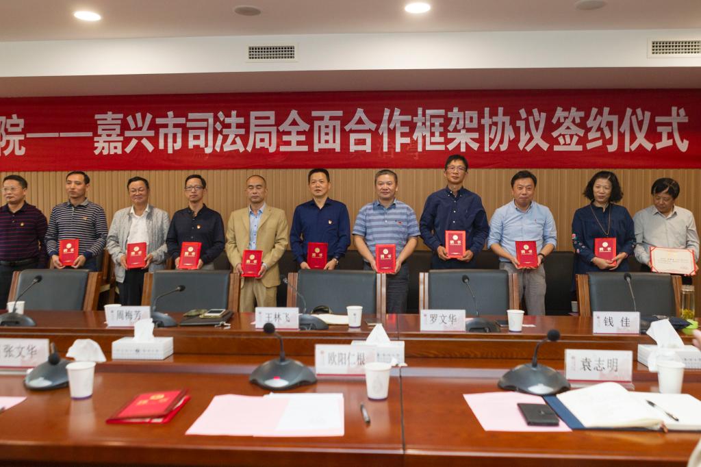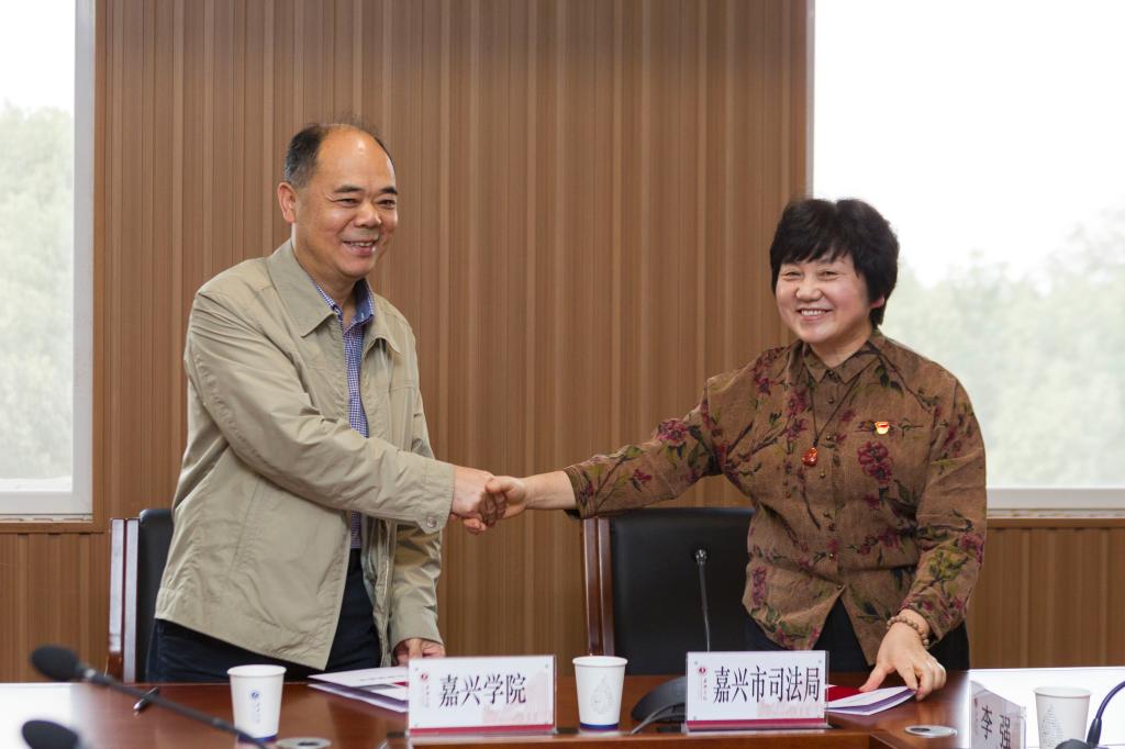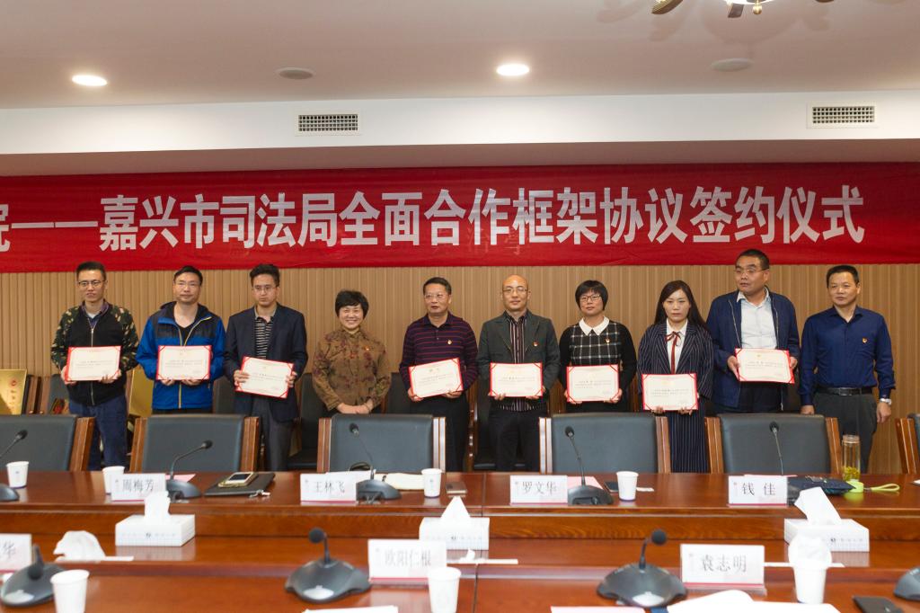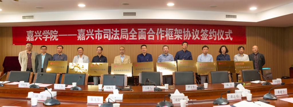 会上,双方签署了《嘉兴学院—嘉兴市司法局合作框架协议书》,互聘咨询专家和教师,并共同为“嘉兴学院公共法律服务研究中心”揭牌;市司法局等十家单位接受了“嘉兴学院校外实践实训基地”授牌。
