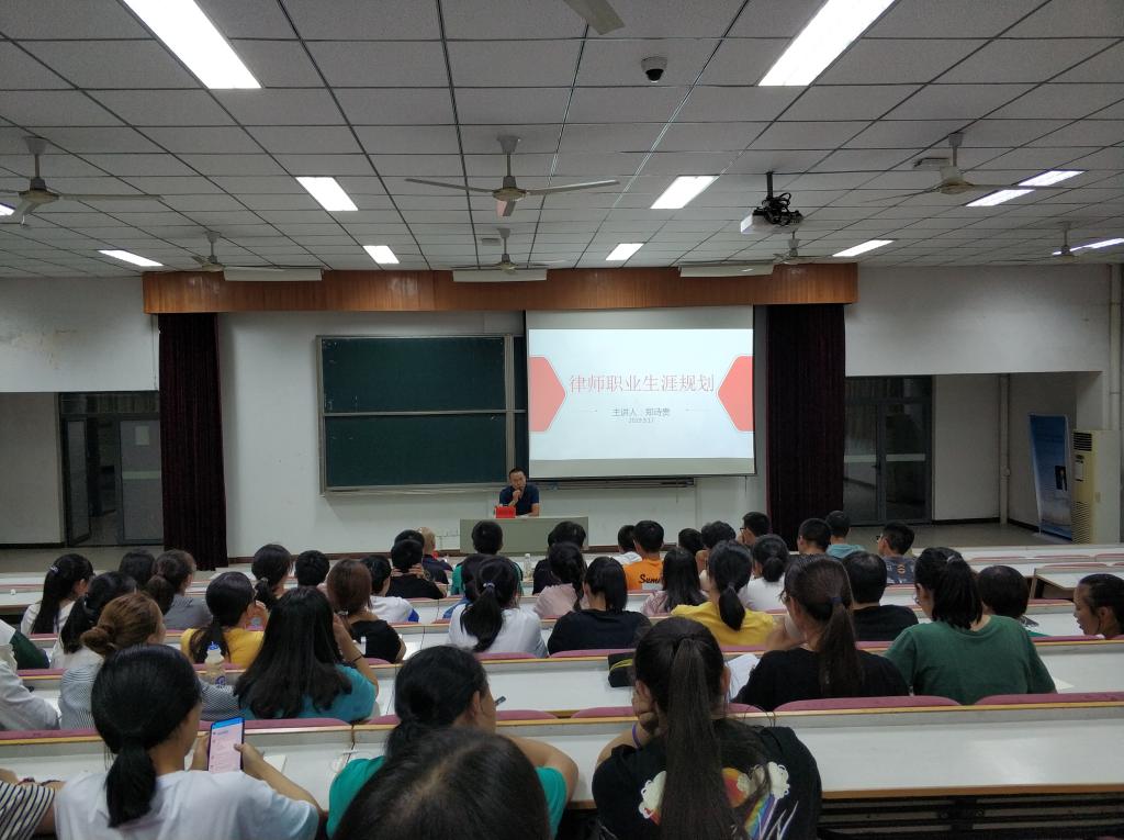 2019年9月17日晚上,浙江开发律师事务所合伙人郑诗贵律师应邀为18jav 法学专业大一新生开展了题为“律师职业生涯规划”的始业教育讲座。郑律师从律师的职业前景、律师应当具备的素质能力、律师应当养成的良好习惯以及我国司法体制的基本状况,郑律师结合自身的办案实践,深入浅出,生动风趣,给新生上了一堂很好的专业教育课。
