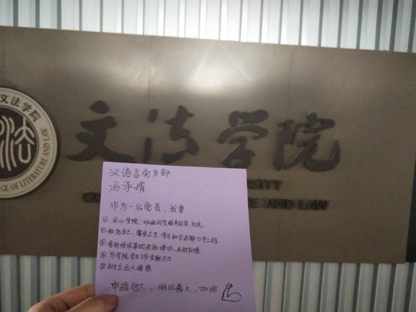 文学学科党支部的每位教师党员在学校“申硕创大”之际立誓言,表决心,将不忘初心,牢记使命,在教学科研工作中攻坚克难,以优异成绩迎接“申硕创大”。法学学科党支部结合法学专业特色,表示将全力以赴为学校发展保驾护航,积极提供法律咨询和法律援助服务,为构建法治校园凝心聚力。