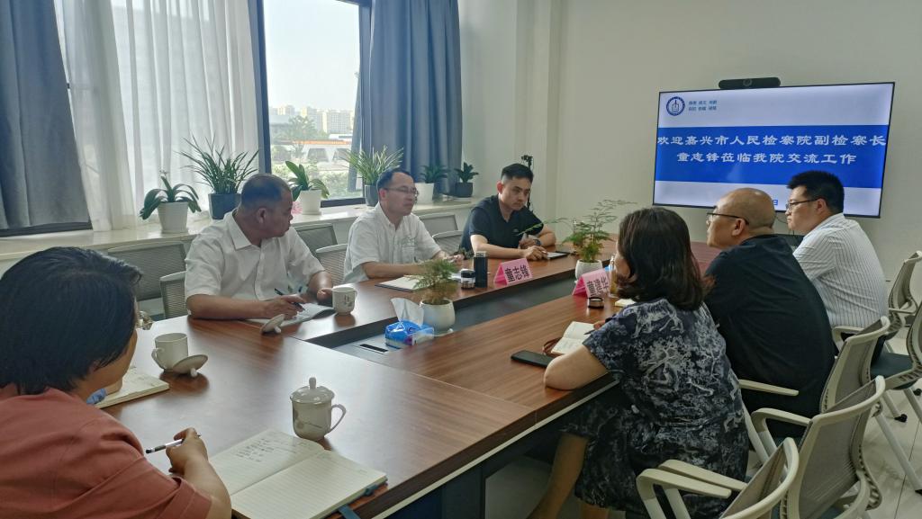 6月5日下午,嘉兴市人民检察院副检察长童志锋一行来18jav 交流检校合作事宜。院党委书记洪坚、副院长(主持工作)童建华出席会议。
