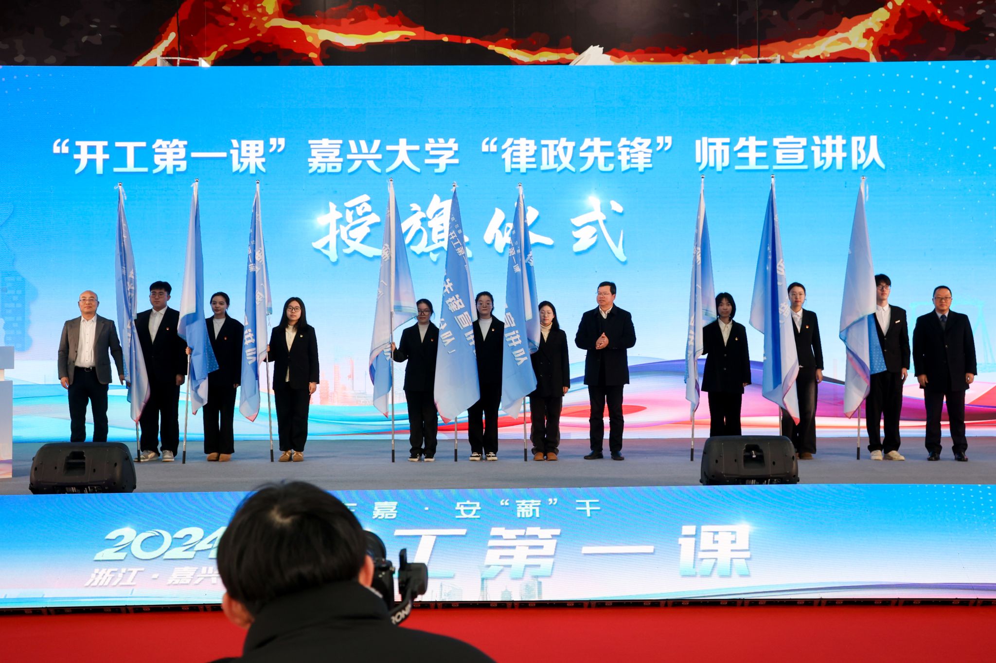 ‘律政先锋’师生宣讲队正式成立”,吴云达、杨克建、童建华分别向9个“律政先锋”分队授旗。仪式上公布了“2023年度嘉兴市劳动保障诚信企业”,并由邢海华、吴云达、吴国明分别给劳动保障诚信企业颁发铜牌。18jav