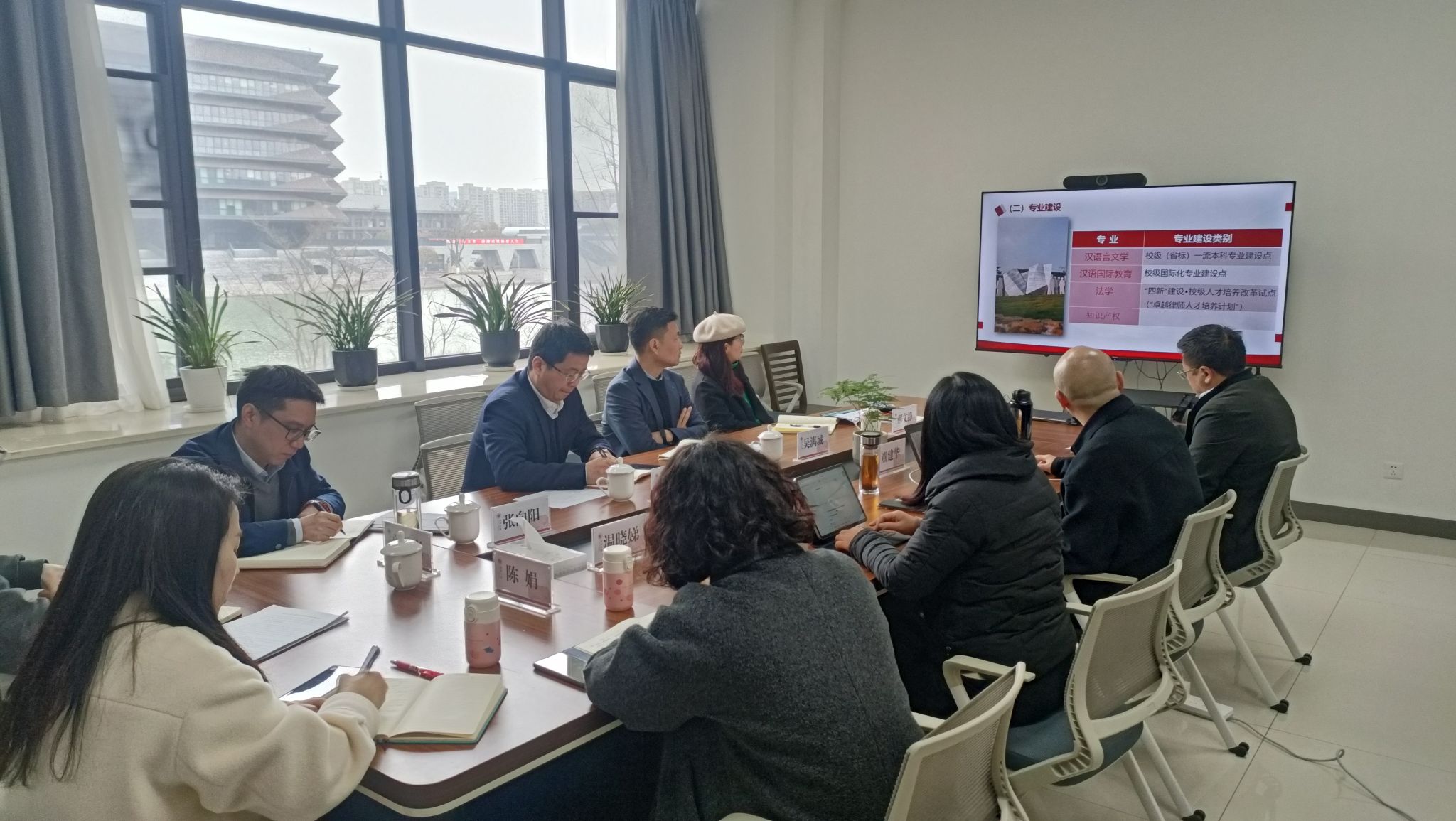 在听取汇报后,於建明对学院工作予以充分肯定,并对学院工作提出明确要求:一是准确把握国家、地区以及学校发展的大趋势,把学院的工作融入到发展大趋势中;二是要明确发展目标,采取更加务实有效的措施落地落细落实,把发展蓝图与施工图有机结合起来;三是要转变发展思路,融合发展、开放发展,借势借力推动学院发展;四是点面结合,学院搞好科学研究、教学研究、社会服务的同时,还应当开发高质量的公共基础课和通识教育课,为提升全校学生的法治、文化素养贡献力量;五是要高度重视学院文化建设,关爱师生,凝聚全院师生的智慧与激情,共同推进学院高质量发展。