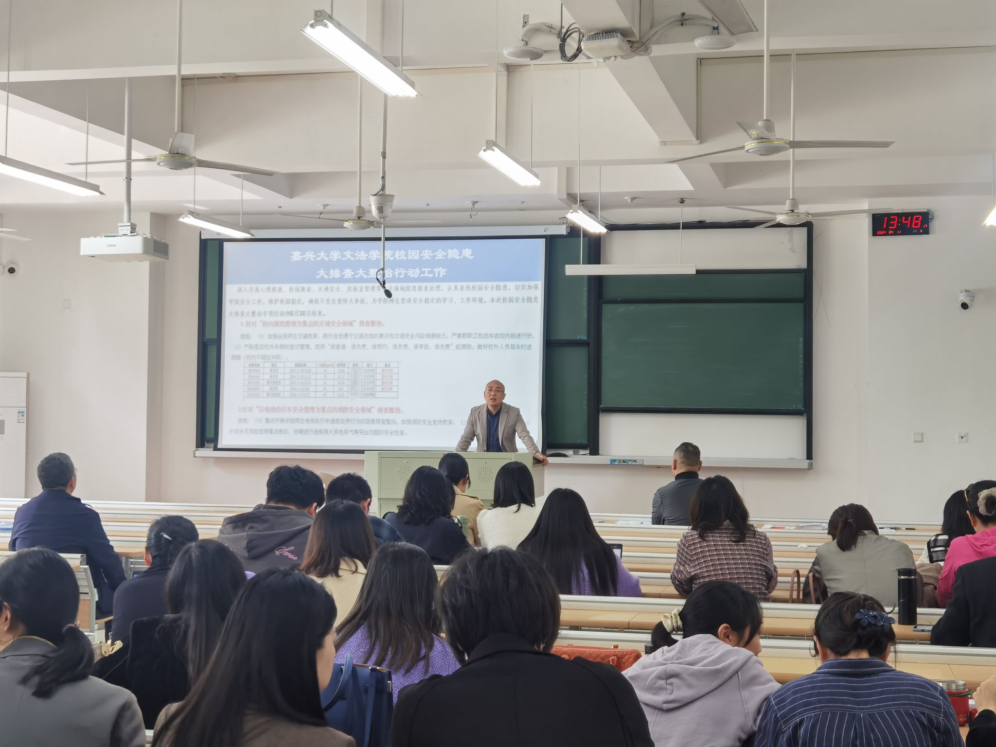 即将开展的心理健康、校园欺凌、交通安全、实验室管理等重点领域隐患排查治理相关工作进行了部署动员。童建华表示,希望全体师生高度重视本次活动,积极组织、开展和参与各项安全工作,并通过近期全国各地发生的多起安全事故案例以警示大家。童建华强调,校园安全无小事,需时刻警惕安全隐患,做到未雨绸缪、有备无患,要坚守安全底线,不触安全红线,用实际行动为为学院师生营造安全稳定的学习、工作环境,助力学校高质量发展。
