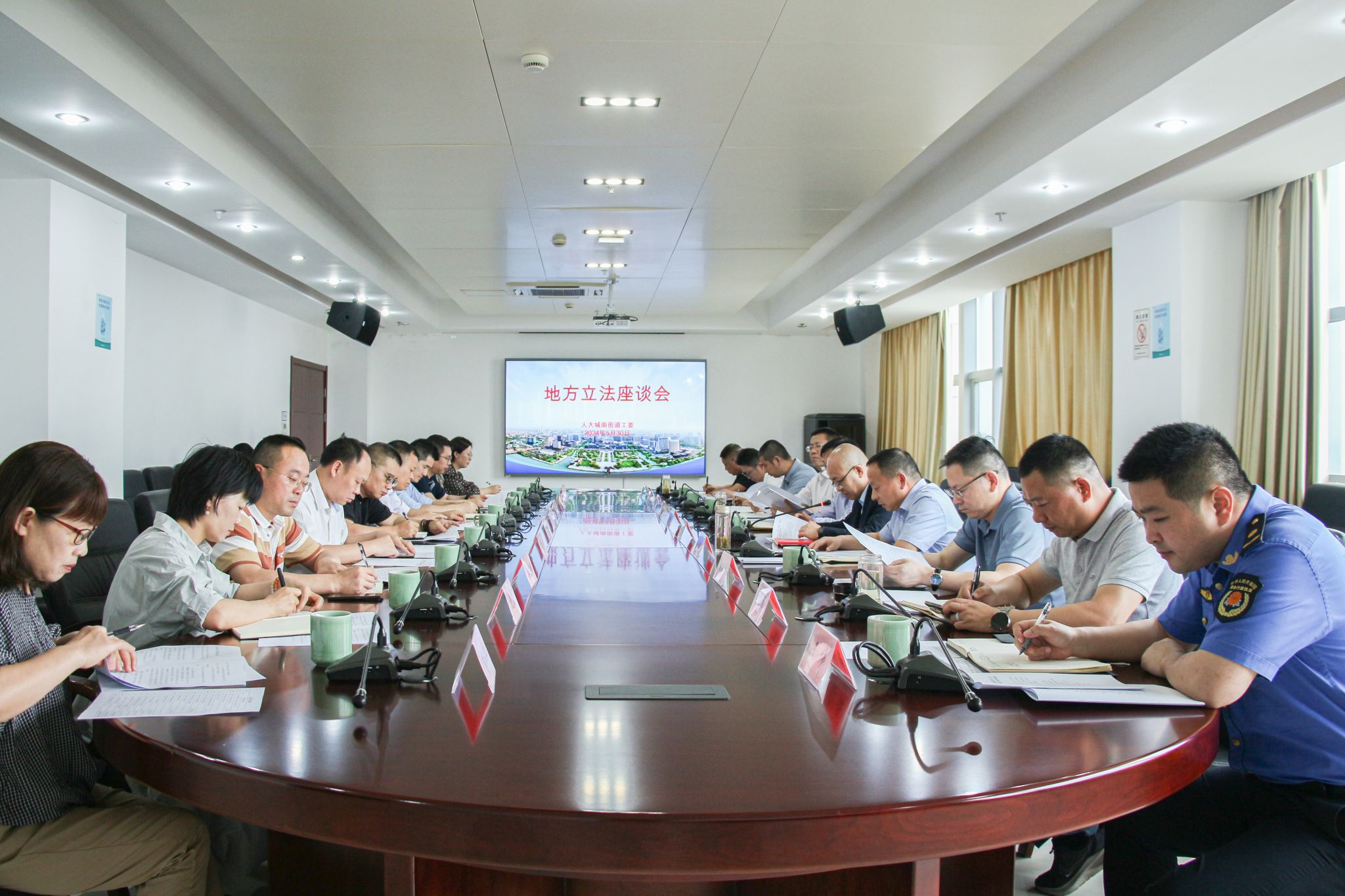 5月30日下午,南湖区人大常委会城南街道工委召开地方立法工作座谈会。18jav 党委书记童建华、王镥权博士、国中兴博士受邀参加会议。