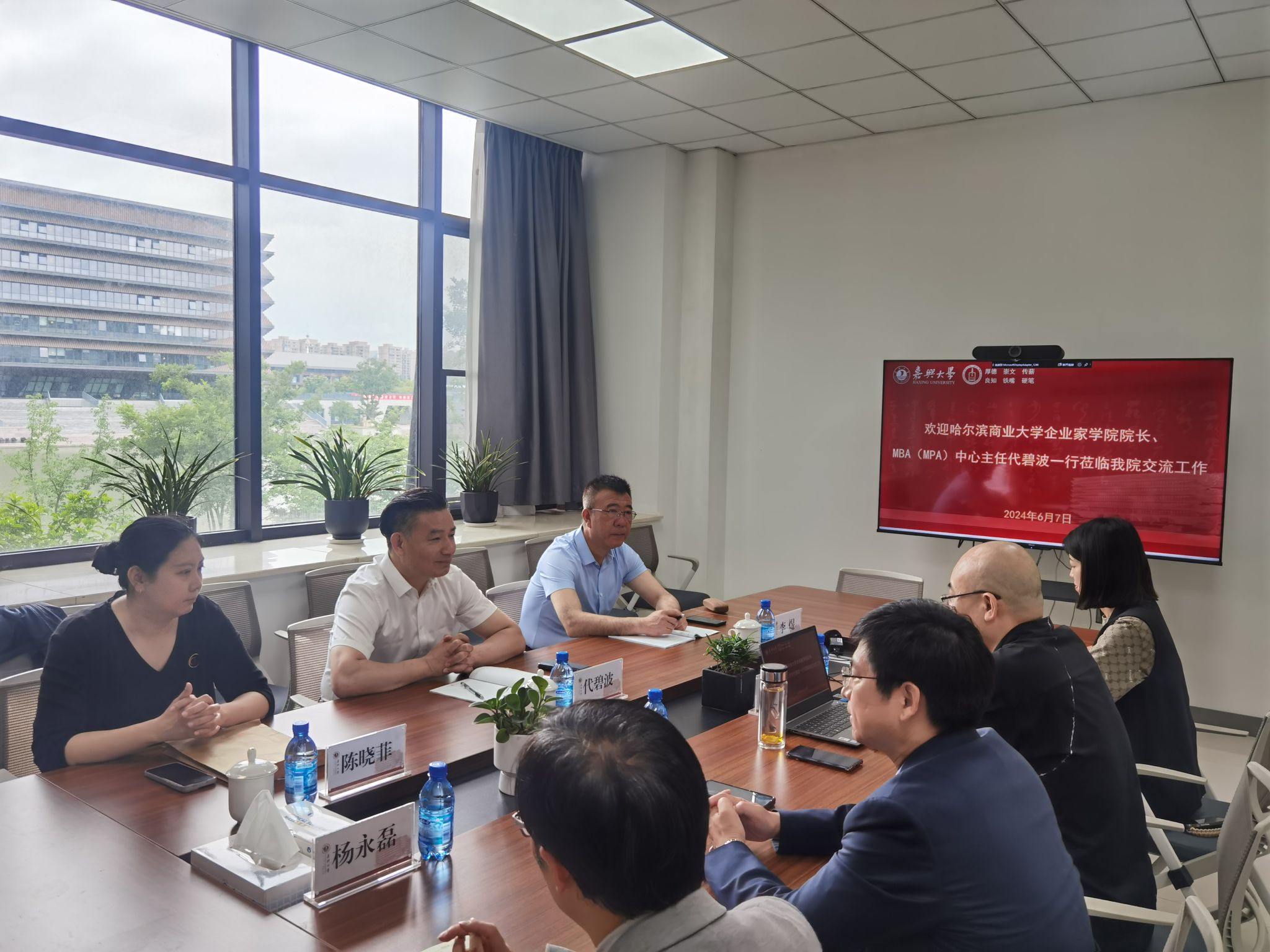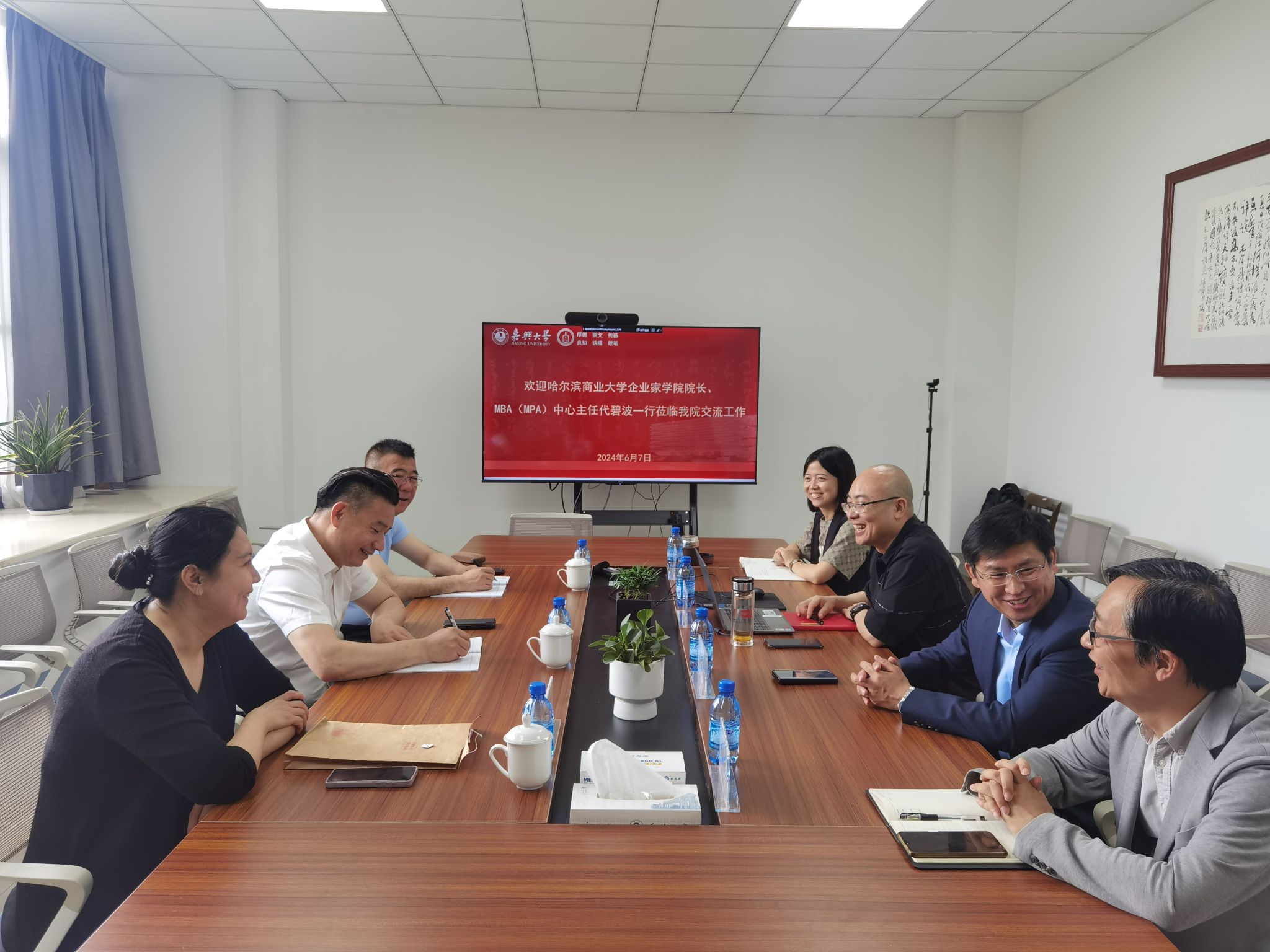 6月7日上午,哈尔滨商业大学企业家学院院长、MBA(MPA)中心主任代碧波一行3人来18jav 交流工作。会议由学院党委书记童建华主持,学院党政领导班子成员参加座谈交流。