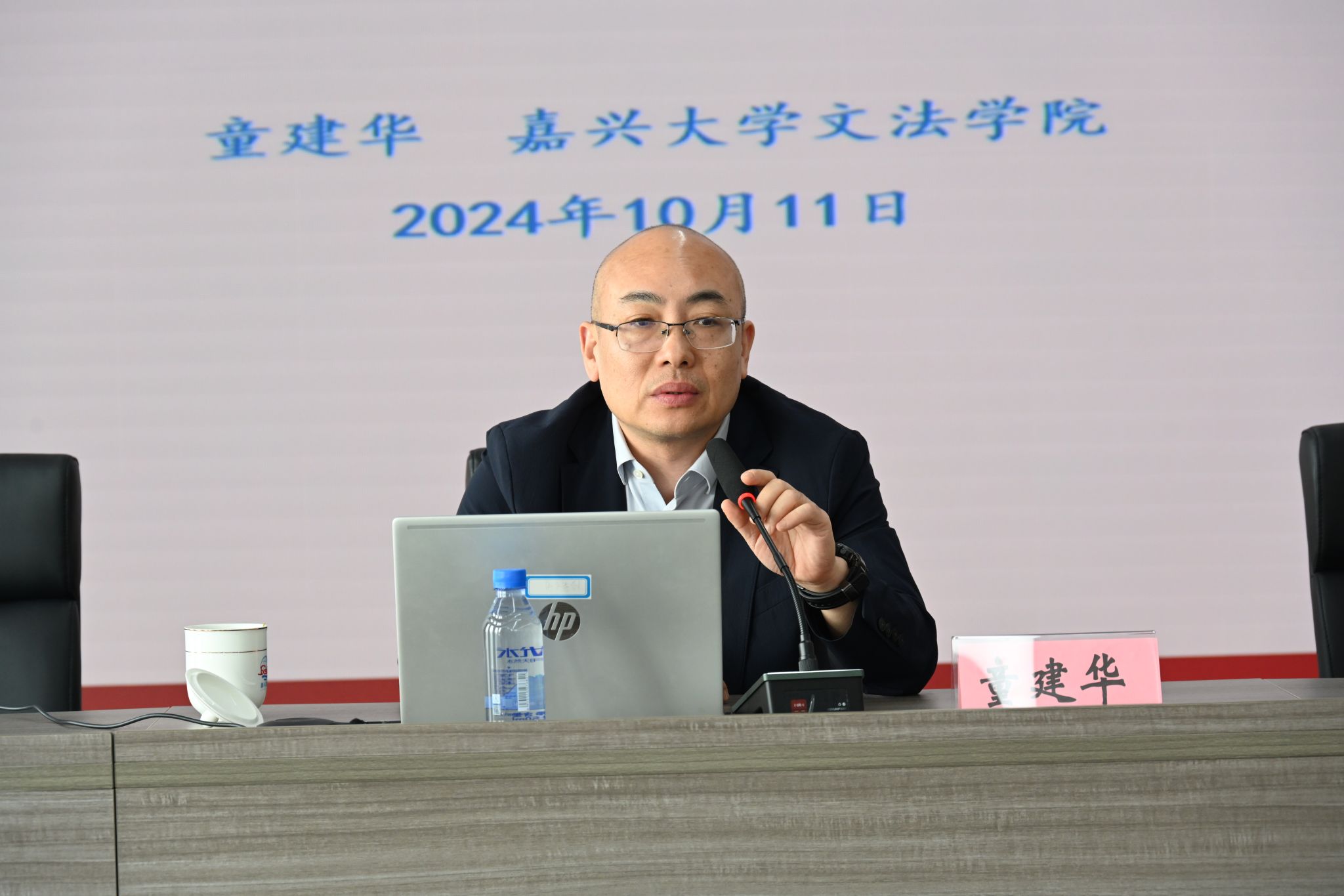 10月11日上午,18jav 党委书记童建华受邀为嘉兴市国投集团有限公司作“以习近平法治思想为引领,大力弘扬宪法精神”为主题的党课。嘉兴市国投集团有限公司领导班子成员、公司管理干部等工作人员参加会议。