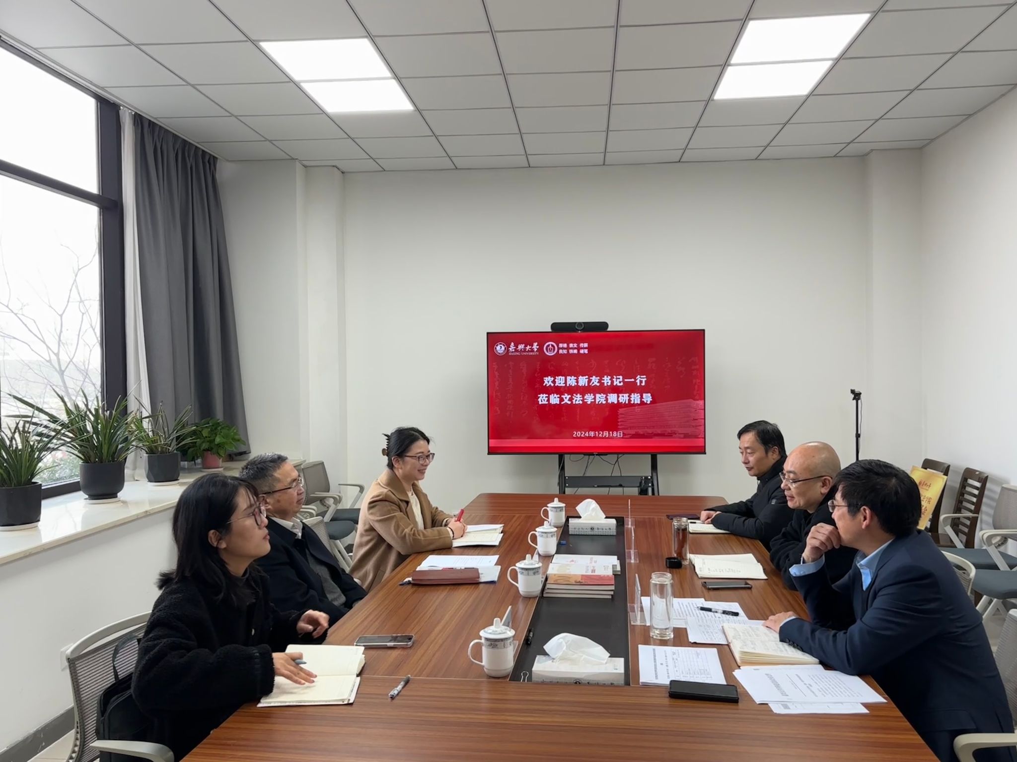 陈新友肯定了学院近年取得的成绩以及新班子在近期工作中的成效,并对学院的发展以及下一步工作提出了三点要求:一要发展战略再提升。学院发展要与学校发展紧密结合,特别是要找到实质性的结合点,充分发挥地域优势,主动融入区域发展,实现其与区域经济社会发展的互利共赢。二要创新发展再加力。结合综合改革、岗位聘任,把握机遇,顺势而为,盘活“人才存量”,激发人才内生动力。三是工作基础再夯实。要充分发挥教授力量,大胆启用青年人才,加强制度规范化建设,加强师德师风、科研诚信等方面教育,持续推进“一院一品”清廉文化品牌建设,打造与地方文化结合的清廉示范。陈新友还对纪检监察学科建设提出了具体的指导意见。