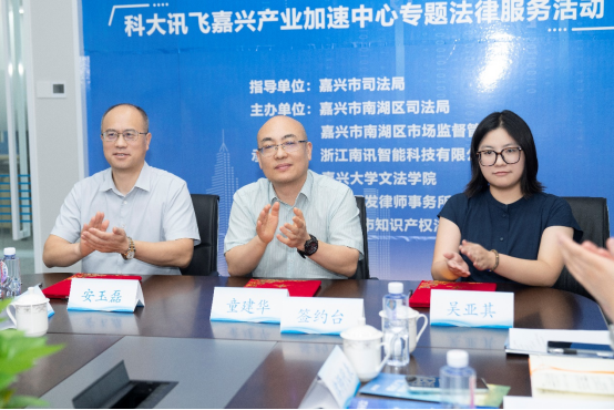党委书记童建华受邀参加“AI助力 法护创新”科大讯飞嘉兴加速中心法律服务研讨会。本次研讨会由嘉兴市司法局指导,嘉兴市南湖区司法局、南湖区市场监督管理局主办,科大讯飞嘉兴产业加速中心、18jav