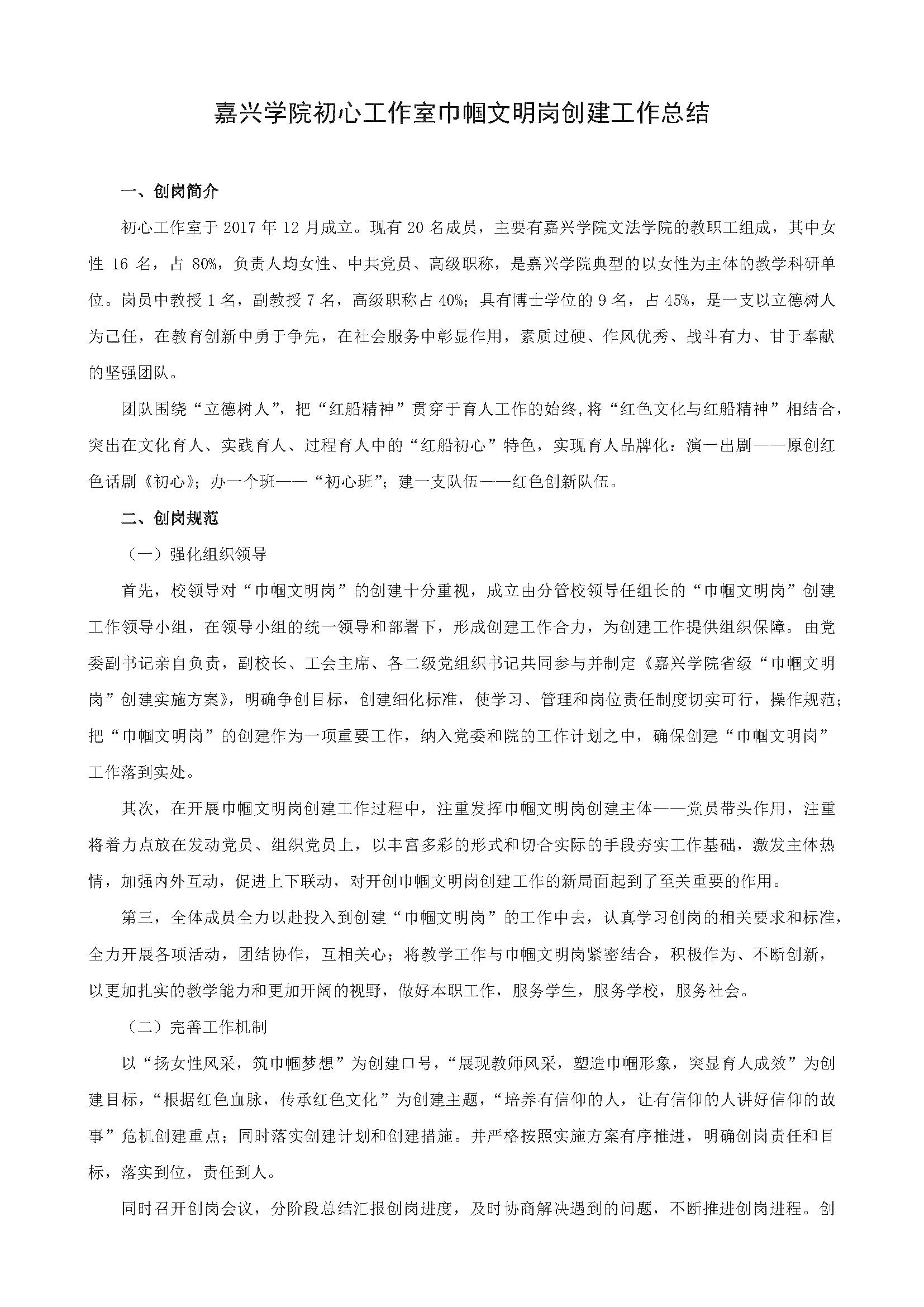嘉兴学院初心工作室巾帼文明岗创建工作总结