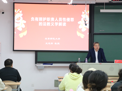 王教授从“负有照护人员性侵罪”切入,详细地阐释了这类案件的性质和特点。采用常规的思维模式,从具体的法律条款入手,王教授对《刑法修正案(十一)》颁行前性侵犯罪的立法状况和特点、本罪的立法理由、一些相关争议、本罪法益指导下的构成要件的解释等几个方面进行了详细阐述。