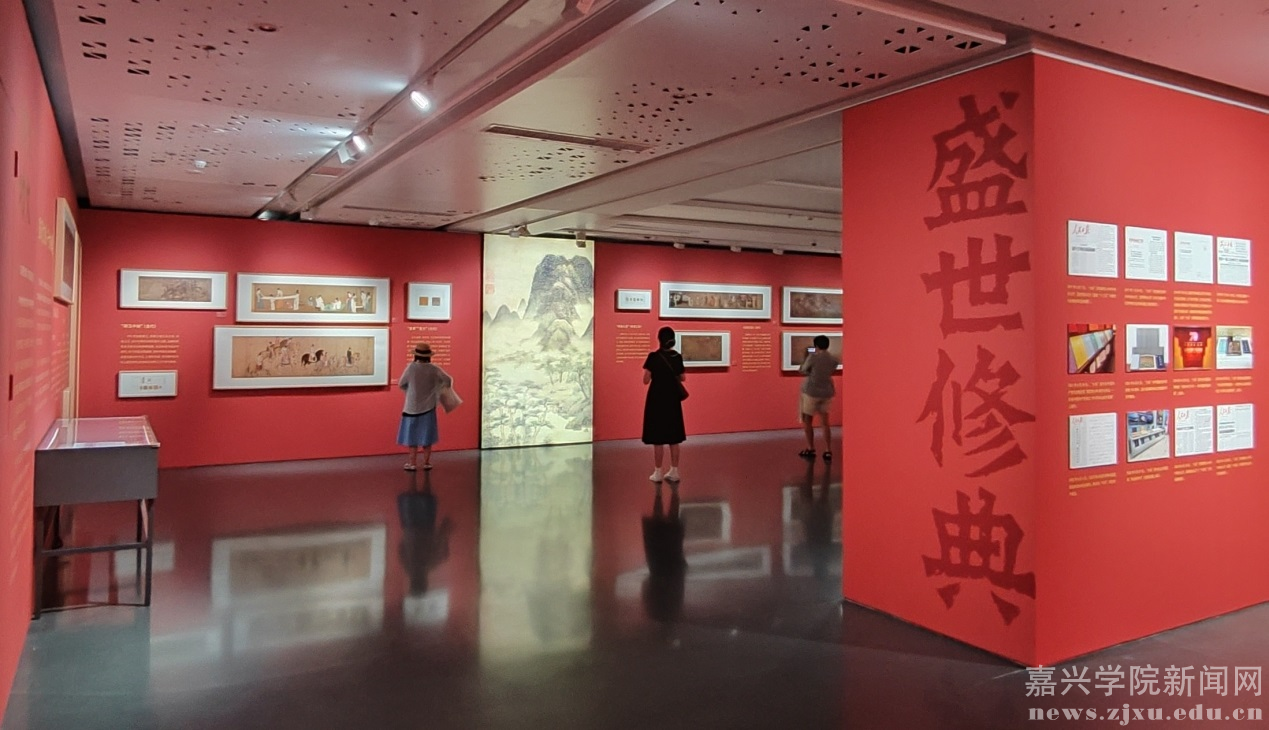 师生代表,到位于嘉兴市文化艺术中心的嘉兴美术馆新馆,参观了“盛世修典—‘中国历代绘画大系’成果展•嘉兴特展:古代人物画与服饰生活”。