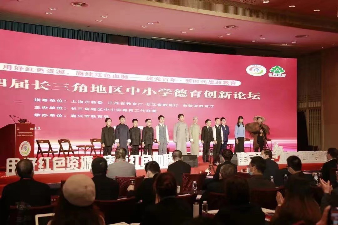 初心团队王金超等多次精心指导,由嘉善县青少年宫、嘉善县吴镇教育集团泗洲小学学生演出的。小演员通过演《初心》,给大家带来一堂生动的党史教育宣讲课,正符合本次德育论坛“用好红色资源,赓续红色血脉——建党百年·新时代思政教育”的主题。