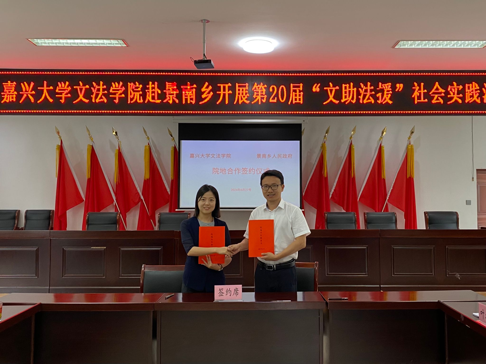 二十年来,这支由18jav 团委发起,集教育帮扶、法律援助、文艺下乡、调查研究等多种形式为一体的大学生志愿服务团队,始终秉持着“服务社会、传递爱心、促进文化交流”的宗旨,为浙江省丽水市景宁畲族自治县景南乡的发展贡献着青春力量。6月27日早上8:30在景南乡人民政府举行了18jav 赴景宁暑期社会实践团成立20周年纪念活动,景南乡党委书记张建秒、景南乡人大主席彭凌飞、景南乡党委委员林赵义、景南乡副乡长许文敏等领导出席活动