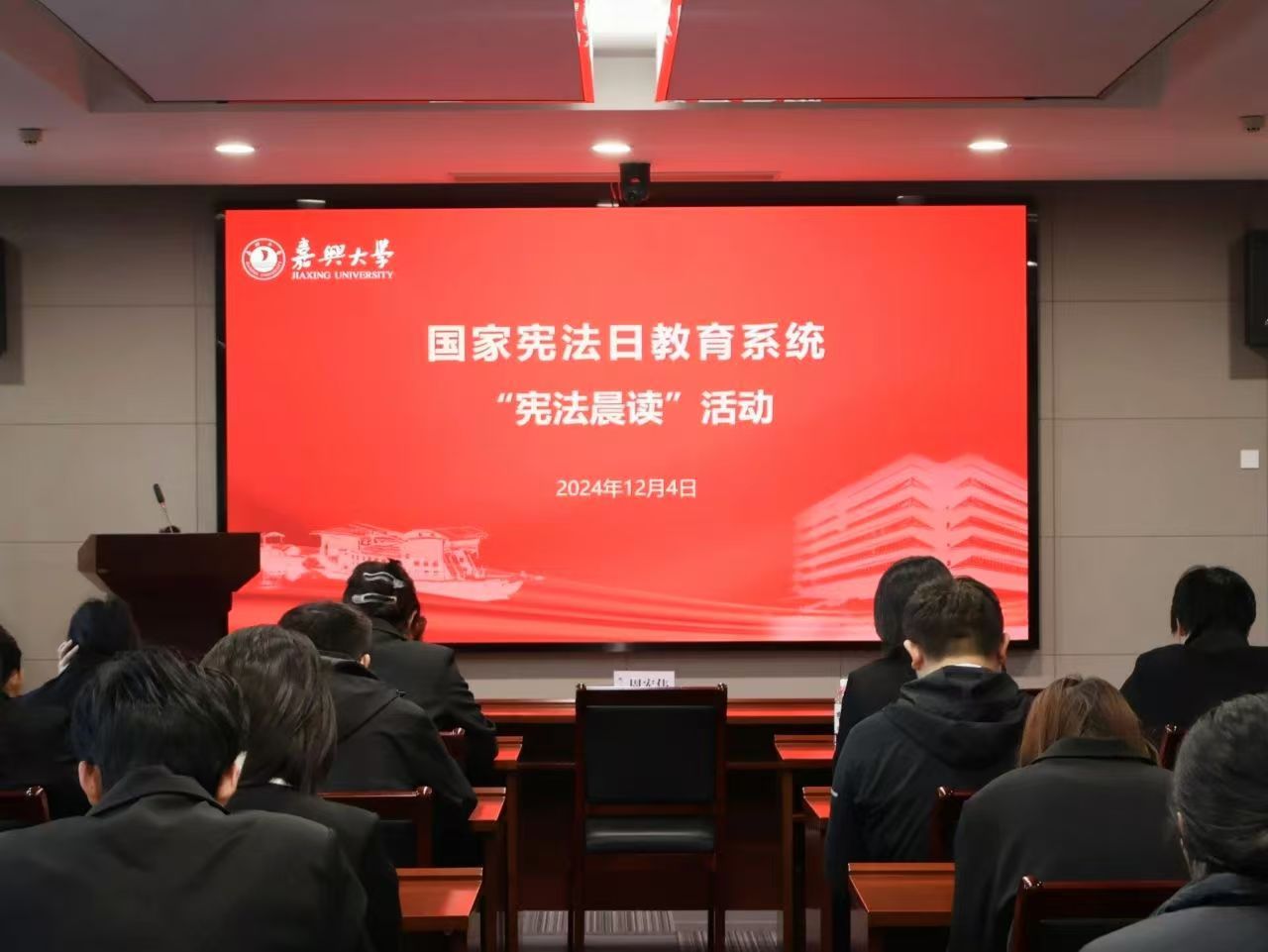 党委副书记及各学院学生代表在行政楼246会议室集体同步收看直播并进行宪法跟读等活动,活动由18jav